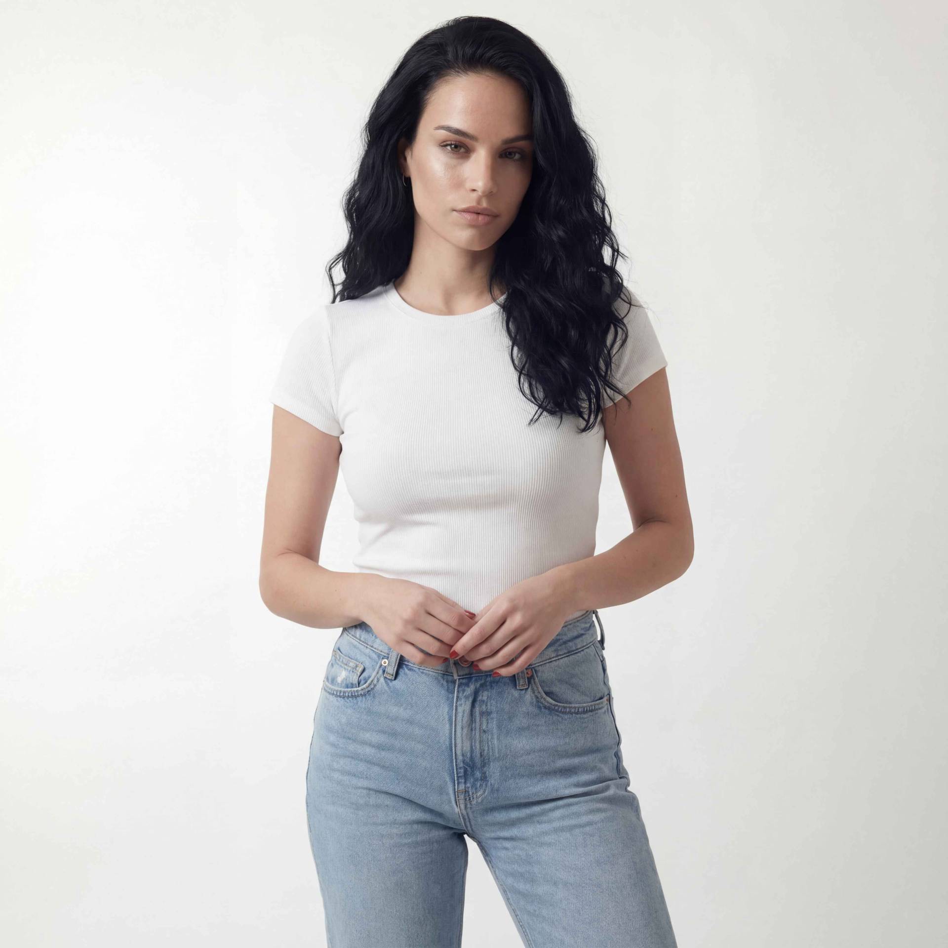 L’ultima fase della pipeline riguarda la rifinitura e l’integrazione dell’immagine finale. Il sistema armonizza texture, illuminazione e color grading per garantire che il capo e il corpo appartengano alla stessa scena visiva. Il risultato è una visuale fotorealistica pronta per essere utilizzata in contenuti e-commerce, campagne digitali e comunicazione social.